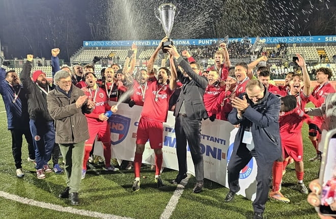 L'Esio Verbania si aggiudica la Coppa Piemonte di Seconda e Terza Categoria 2024-2025. Nella final-four disputata ieri sui campi di Trino Vercellese e Casale Monferrato, la formazione gialloblù allenata da mister Farina supera per 4-1 il Calliano nella finalissima. L'Esio centra così il triplete dopo aver già vinto il campionato di Seconda e la Coppa di Seconda e Terza