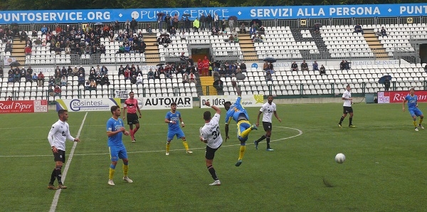 La musica però non cambia con Morra che al 12' sigla il 3-0 facendosi trovare pronto alla deviazione vincente sulla punizione di Mammarella. L'unico guizzo della Carrarese al 27' con Biasci che realizza il gol della bandiera con una pregevole girata dal limite dell'area. A quel punto la gara si avvia lentamente ai titoli di coda e al primo dei cinque minuti di recupero concessi dall'arbitro Foresta calcia da dietro Comi vedendosi sventolare il cartellino rosso diretto lasciando così i suoi in dieci.