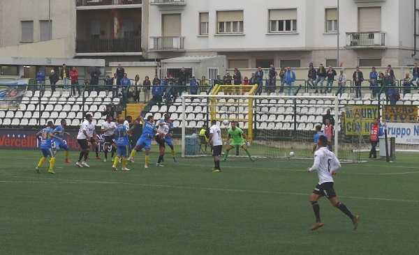 Le “bianche casacche” scendono in campo con aggressività e intensità, atteggiamento che finisce con l'intimorire gli ospiti. Bastano solo 15' alla Pro Vercelli per sbloccare il risultato con Morra che si fa trovare pronto sul cross di Azzi dalla destra. Passano solo tre minuti e la squadra allenata da mister Grieco raddoppia ancora con Morra che si fa trovare pronto alla deviazione sull'angolo battuto da Gatto.