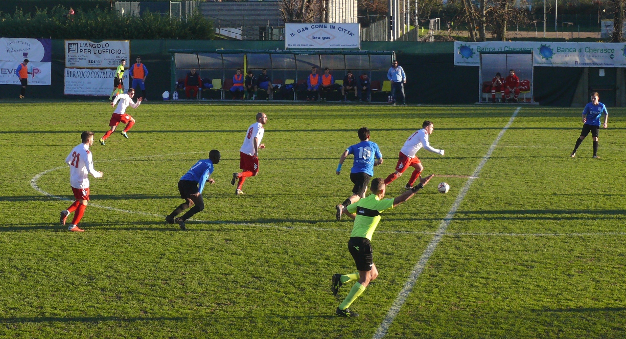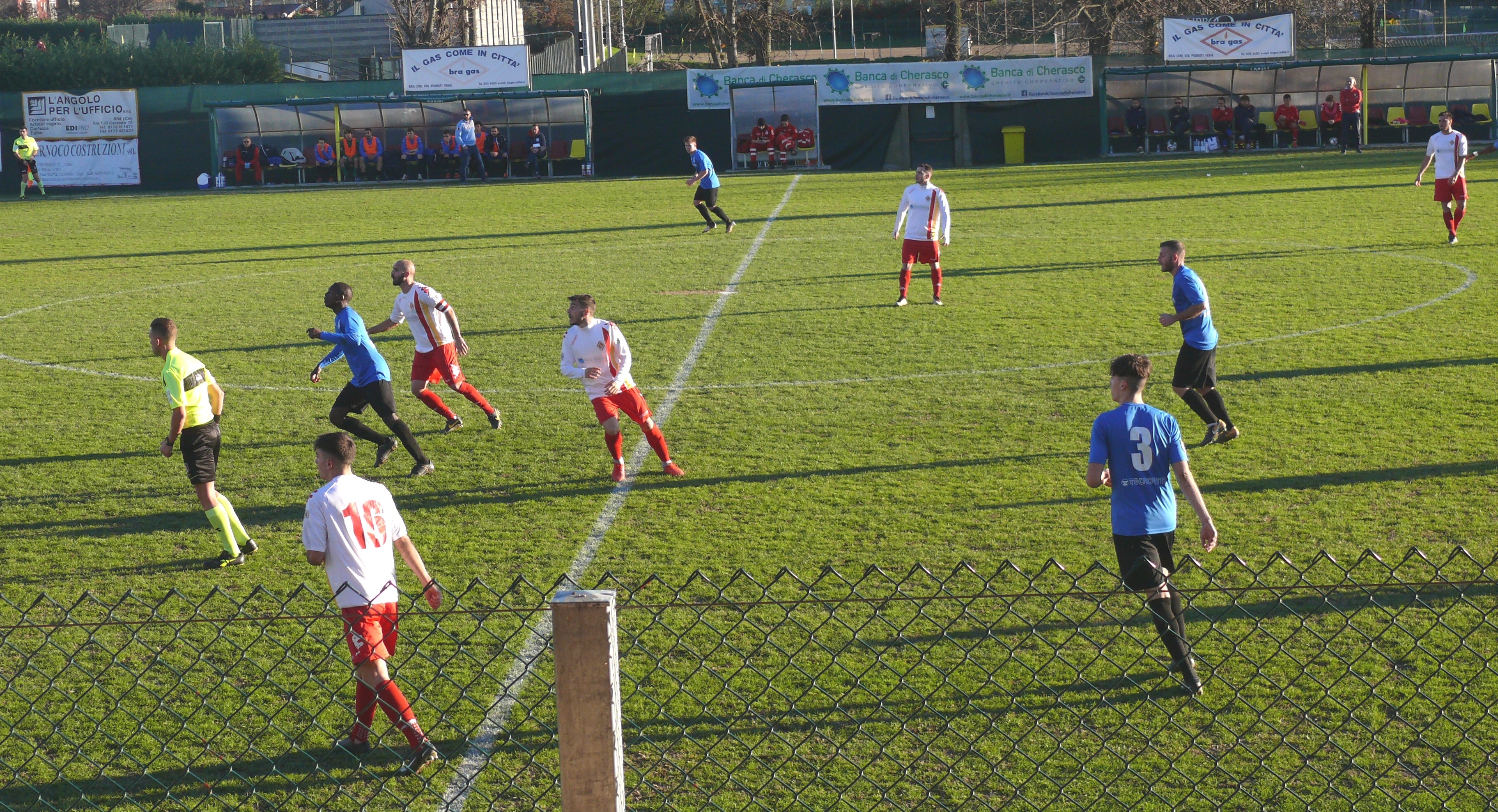 Che fosse una serata storta per il Bra lo si era capito già dopo 40'' quando Casolla, smarcato in area davanti al portiere dal traversone dalla destra di Brancato, sprecava clamorosamente l'occasione tirando debolmente e con poca convinzione permettendo così a Barantani di respingere in uscita. I giallorossi faticavano a trovare spazi e al 39' costruivano una doppia occasione con la doppia respinta di Barantani prima sul tiro da fuori di Dolce e poi sul tentativo da distanza ravvicinata di Giglio. Al 43' sull'angolo battuto da Scienza, Bratto ostacolava Brancato, fino a quel momento uno dei più positivi dei padroni di casa, che finiva con il deviare la sfera alle spalle del proprio portiere.