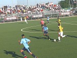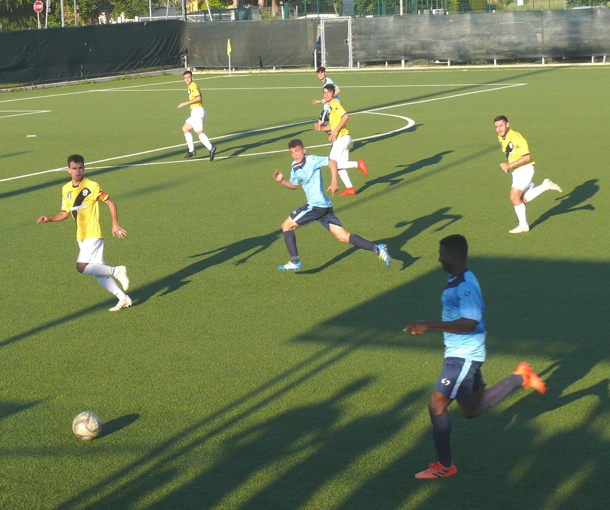 Bastavano appena 6' al Chieri per sbloccare il risultato col perentorio colpo di testa di Olivera sulla punizione dalla trequarti di Di Sparti. I chieresi raddoppiavano all'11' con Bianco che deviava la sfera alle spalle di Berruti ancora su assist del numero 10 azzurro. Dopo aver sfiorato in più occasioni la terza rete, il Chieri tremava al 35' quando un'incomprensione tra Olivera e Maggiolo favoriva Kallon che concludeva addosso al portiere, quindi Gueye da fuori area a porta spalancata concludeva di un soffio a lato.
